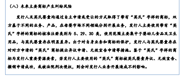 北交所对此高度关心,正在审核问询时要求英氏控股细致申明胶葛布景、进展及潜正在影响。英氏控股正在招股书中亦提醒了相关风险:“英氏”字样属于公司主要品牌资本,若次要商标被对方或被判侵权,公司营业将遭到晦气影响。