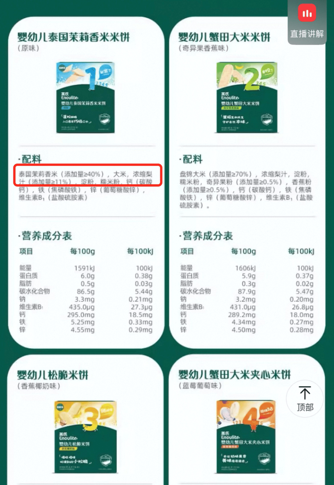 除此之外,英氏控股产物还呈现养分含量标示不实问题,第三方测评机构“小红花测评”此前对市售多款婴儿养分米粉检测发觉,英氏出品的一款标称添加锌元素的“维C加铁米粉”,实测锌含量只要0。237mg/100kJ,不脚标签标示值的76%。按照国度尺度GB13432,强化养分成分实测值不得低于标示值的80%,该产物已不合适尺度要求。虽然其锌含量绝对值仍正在平安范畴,不至风险健康,但标签虚标本身即形成质量瑕疵。养分标示过高而现实含量不脚,容易父母认为宝宝摄入充脚从而放松弥补,实则可能形成养分缺口;反之也可能因反复弥补导致过量风险。