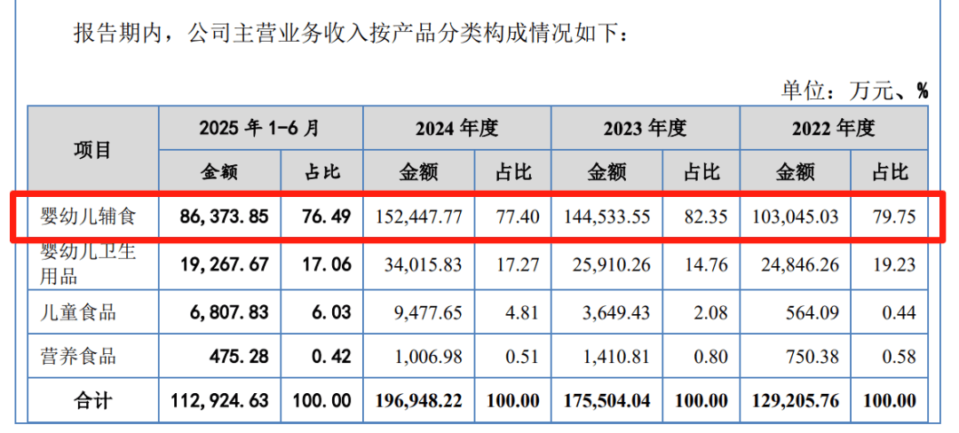 公开材料显示,英氏控股从营婴童食物及婴长儿卫生用品两大板块,此中婴长儿辅食是焦点收入来历。2025年上半年,公司婴长儿辅食营业收入达8。64亿元,约占总营收的76%。