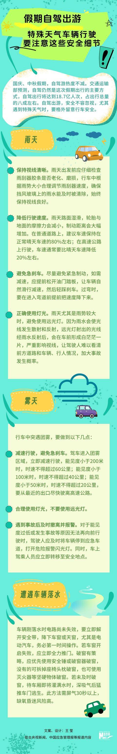国庆中秋假期正逢一年里秋高气爽的时节,适宜外出玩耍。但仍是有部门地域会送来雨雪气候,国庆中秋假期期间,华西、黄淮多降雨气候,青藏高原及新疆北部多雨雪。若是去这些地域自驾逛,要留意特殊气候下的行车平安。一图领会。